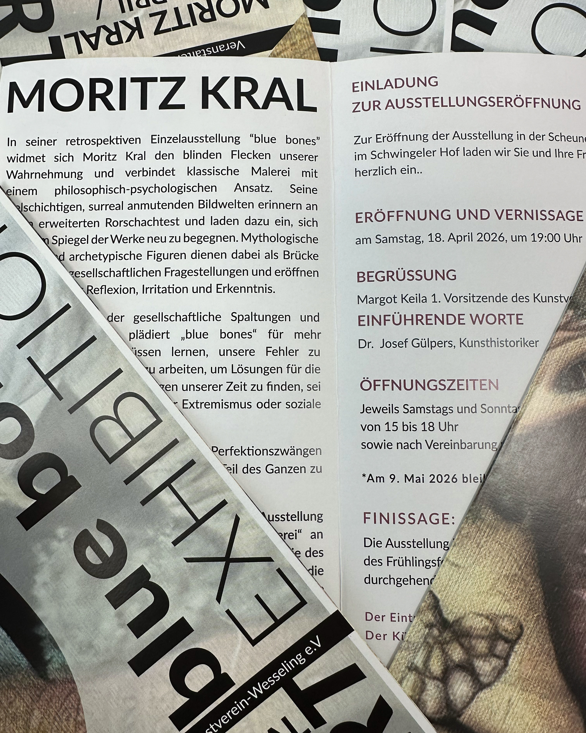 In seiner retrospektiven Einzelausstellung "blue bones" widmet sich Moritz Kral den blinden Flecken unserer Wahrnehmung und verbindet klassische Malerei mit einem philosophisch-psychologischen Ansatz. Seine vielschichtigen, surreal anmutenden Bildwelten erinnern an einen erweiterten Rorschachtest und laden dazu ein, sich selbst im Spiegel der Werke neu zu begegnen. Mythologische Motive und archetypische Figuren dienen dabei als Brücke zu aktuellen gesellschaftlichen Fragestellungen und eröffnen einen Raum für Reflexion, Irritation und Erkenntnis.